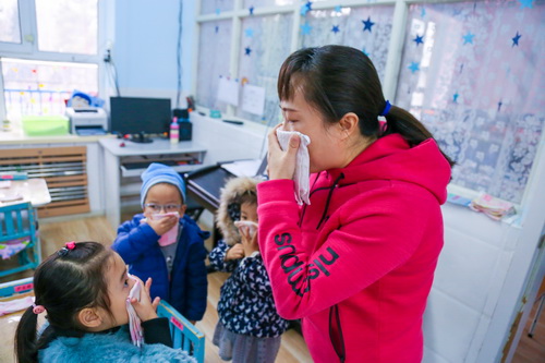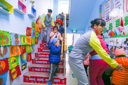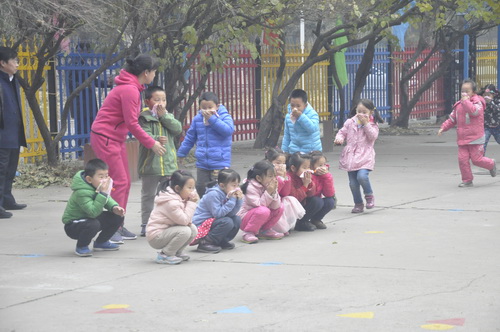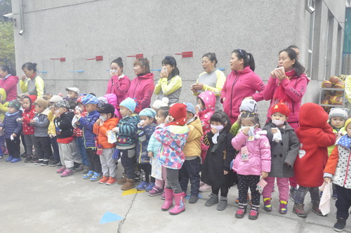 9时5分,警报响起,应急总指挥命令预警小组发布火警报告,幼儿园工作人员迅速启动了火灾事故应急处置预案。各班利用广播告知幼儿应对方式,并进行心理辅导。各班班主任开始帮助幼儿穿戴、讲解疏散注意事项并引导幼儿按疏散路线迅速有序撤离到操场。引导小组成员也第一时间到拐角、岔道处就位,维护疏散秩序,指明疏散方向和路径,并根据现场情况、人流密度对疏散路线做出相应调整。幼儿安全到达操场后,各班教室迅速清点幼儿人数,安抚幼儿情绪,及时向总指挥汇报。不到10分钟,所有幼儿和工作人员全部撤离到操场安全地带,应急方案做到了快速、安全、有序。