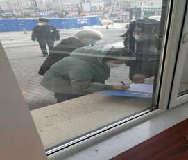 值班人员对外来人员进行实名登记