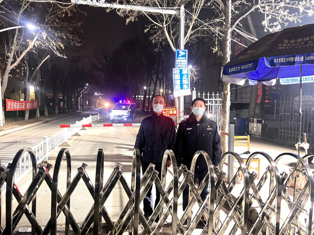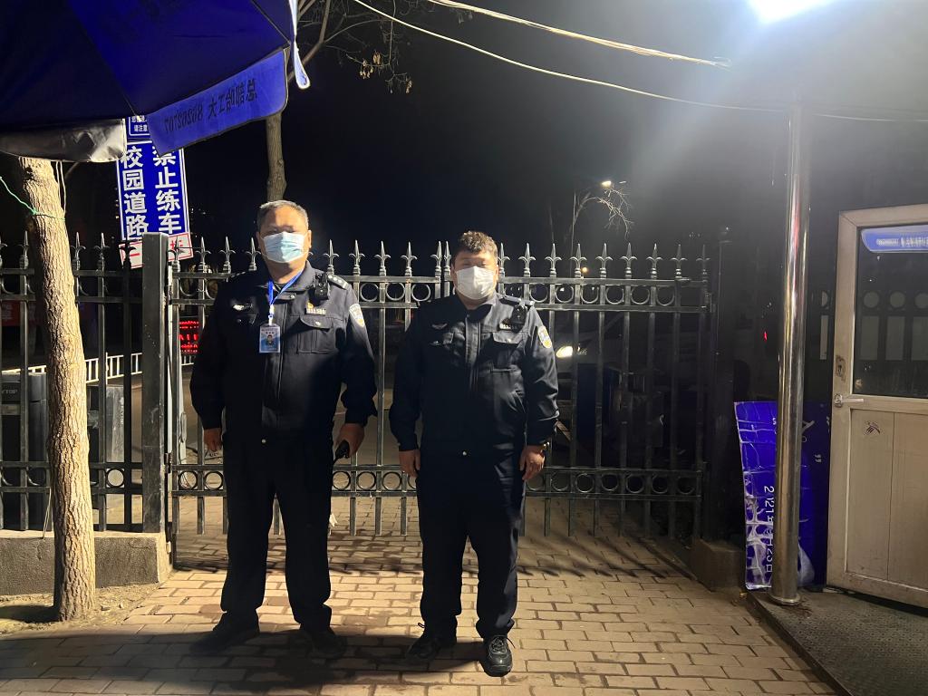 深夜坚守校门管控工作岗位