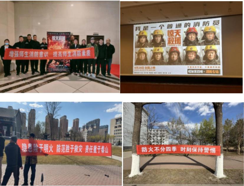 4月17日,保卫处组织消防维保工作人员及校卫队开展消防观影活动。结束后,防火科工作人员在学校悬挂消防安全标语,营造了良好的校园消防宣传氛围。