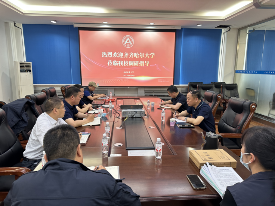 6月9日上午,齐齐哈尔大学保卫处处长赵振华、副处长杜立群一行到我校调研考察和交流工作,东北农业大学保卫处处长刘彦龙、副处长王春辉、陈亮及相关科室人员参加了调研。