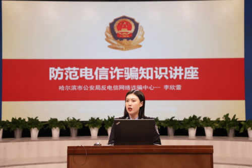 哈市公安局刑侦支队打击治理电信网络新型违法犯罪中心警官李欣蕾作专题报告